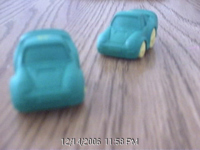i was walking on the sidewalk and i sawa lump in the grass. so i then dug up 2 small cars. i discoved that the cars were not put together how thy should have been put together.